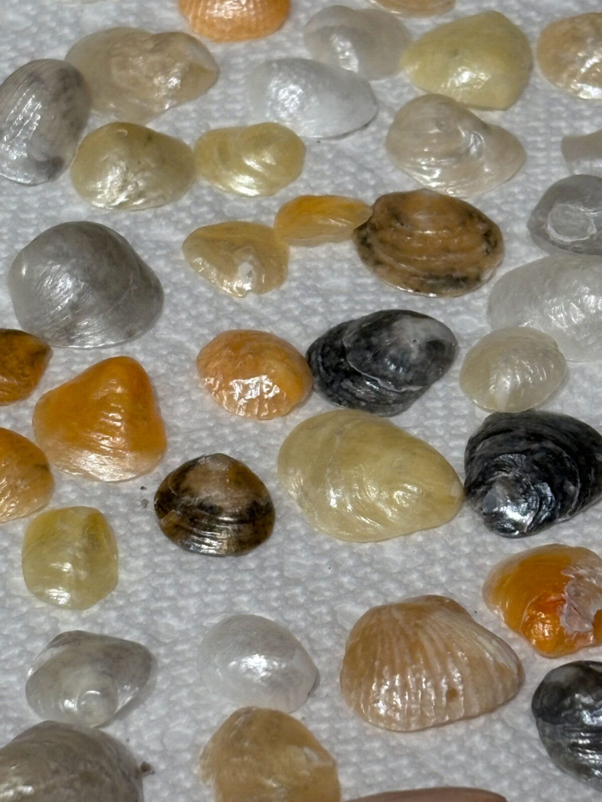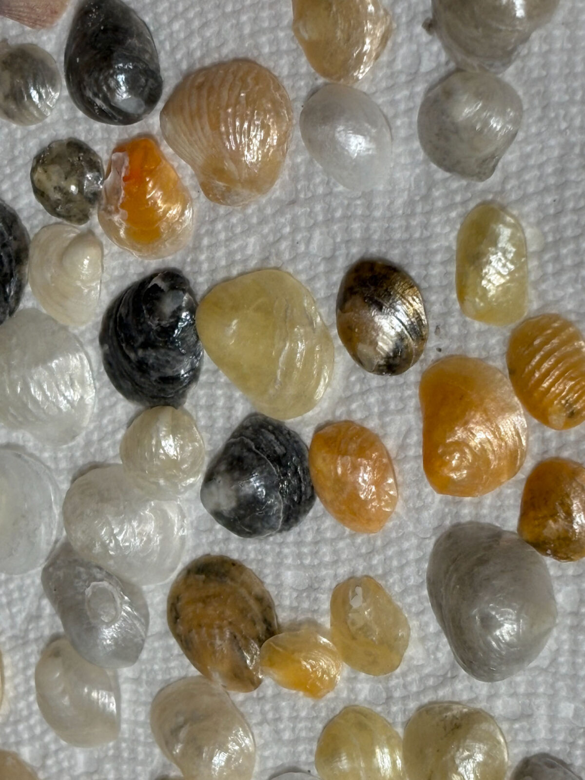 During this time of year I look for “Jingle Shells”. Not because Christmas will be coming soon, but it seems the time of year when the jingle shells pile up on the beach in great quantities. Many people overlook these gems, as they are pretty tiny and easily overlooked.