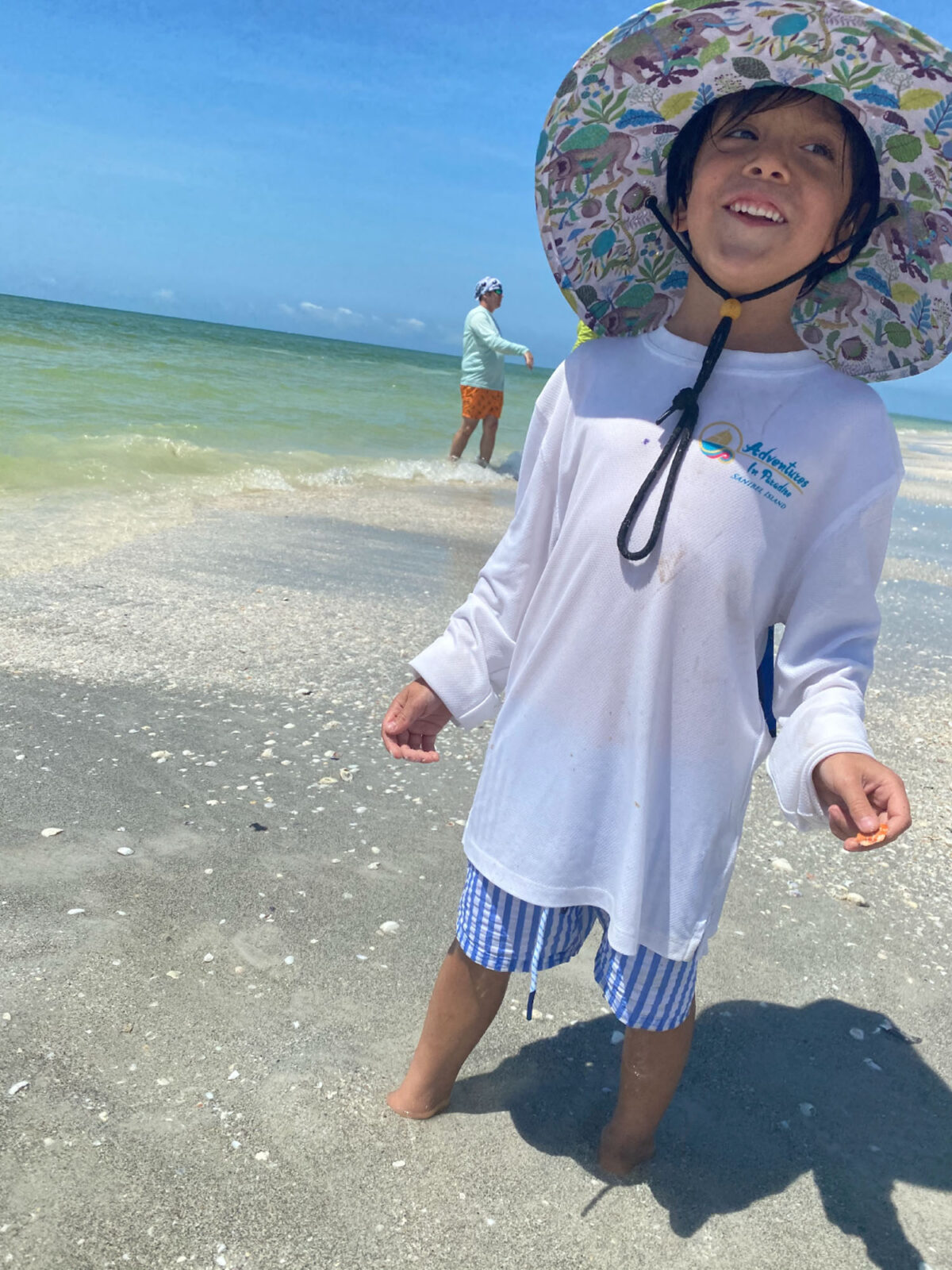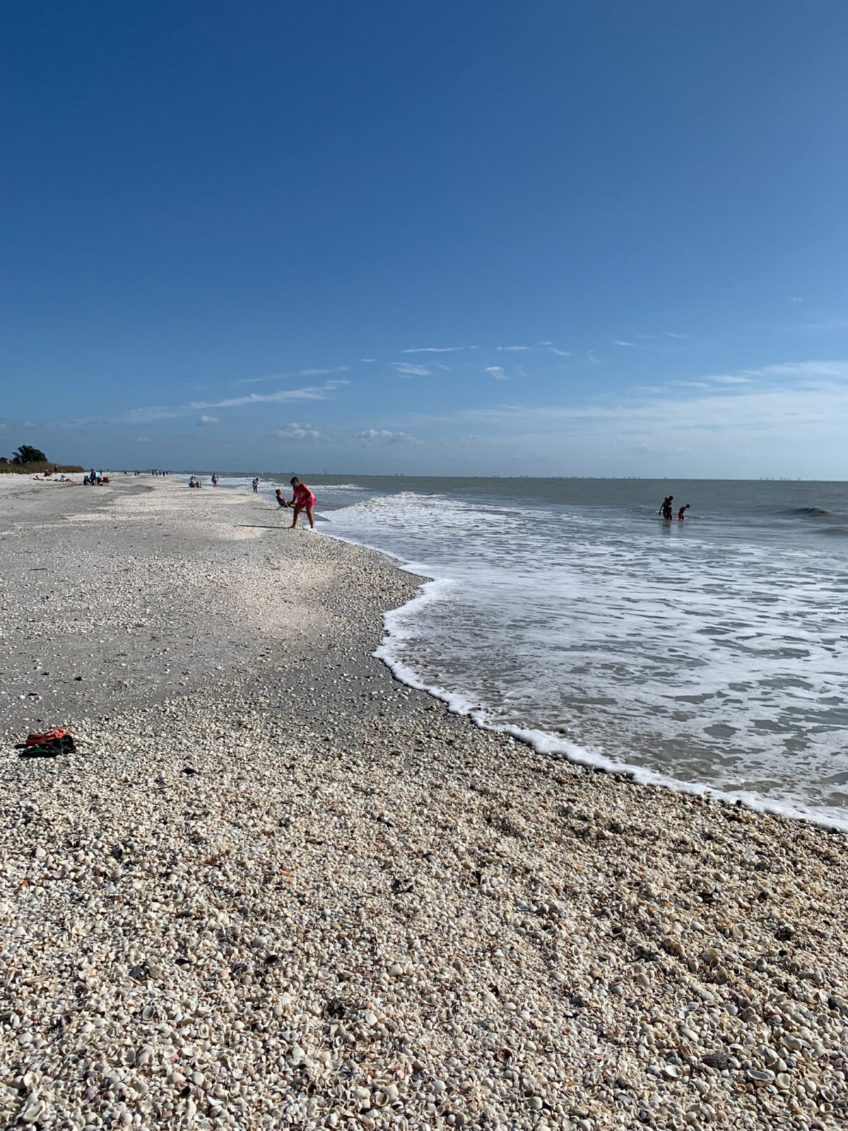 My last cruise to the Outer Islands on the Adventures in Paradise cruise boat “Sun Princess” departed from Port Sanibel Marina in Ft. Myers, FL. The 9:00 depart time was perfect. We cruised through the mangrove tree channel to the waters of San Carlos Bay, Pine Sound and along the shoreline of Sanibel and Captiva Islands. This day we ventured out to the island of Cayo Costa. The crew beached the boat with a kiss to the shore and we all climbed the three step ladder down to the ankle high water to step to the beach. The boat Captain and Mate set up chairs, umbrellas, and handed out free waters, they were so kind and knowledgeable. I grabbed my lunch bag and a water, parked my things in a chair and headed out to shell.